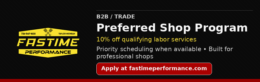 Ready to start your next engine project? Stop by our shop in Taylor, MI or call us today to discuss your build. Your performance starts here — at Fastime Performance.